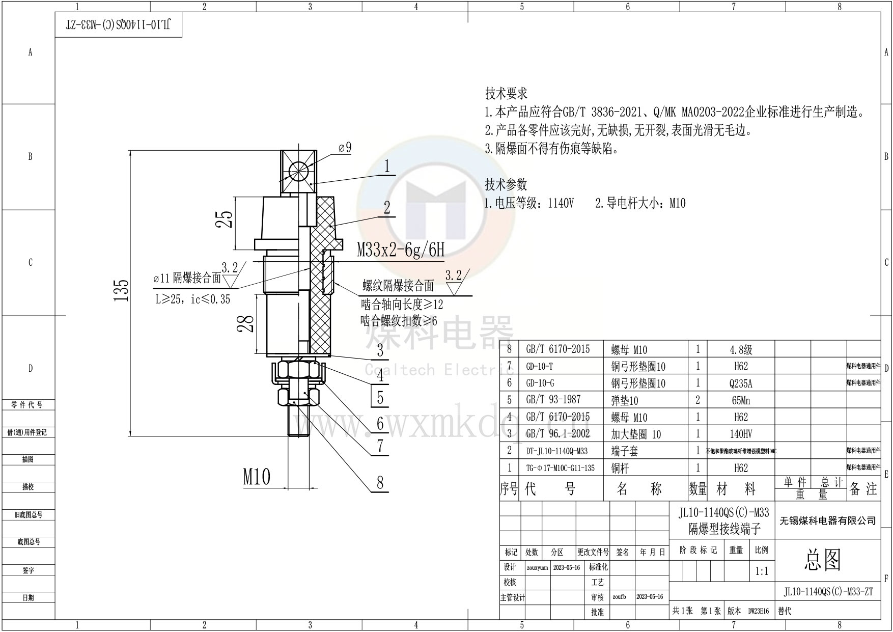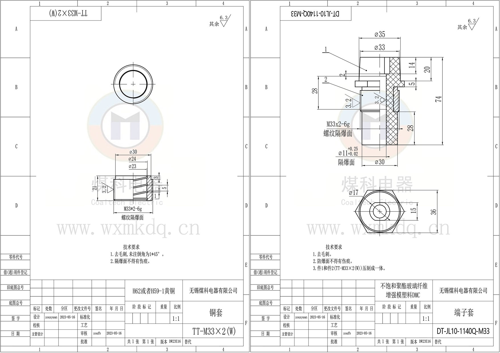 ◆ 安装尺寸:M33x2 隔爆螺纹;