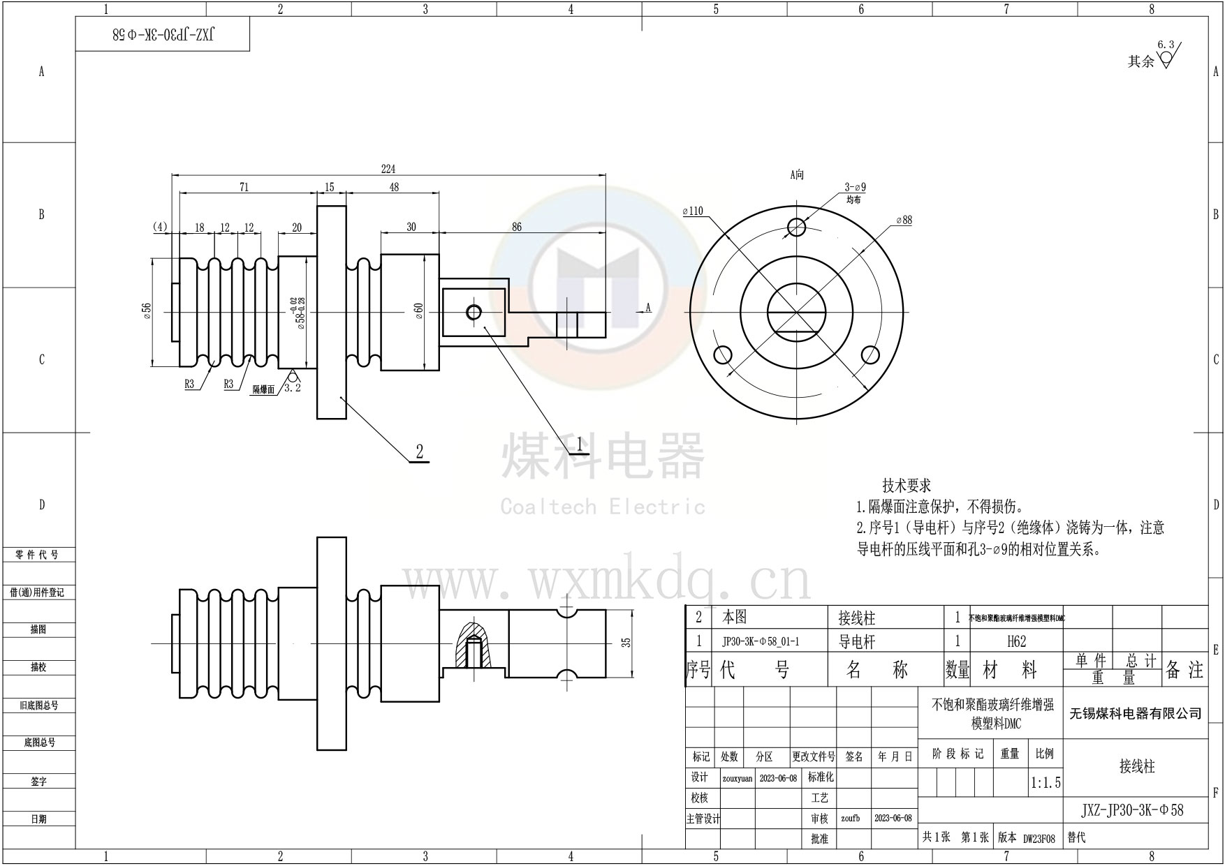 ◆ 绝缘材料:不饱和聚酯玻璃纤维增强模塑料(DMC)!