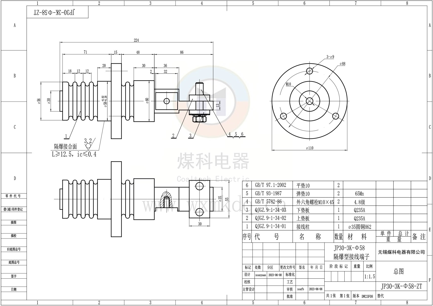 ◆ 安装尺寸:Φ58 隔爆尺寸;