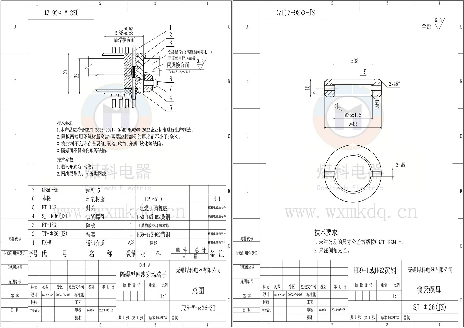 (1)隔爆面安装铜套;(2)芯数;(3)网线规格以及是否需要水晶头;(4)上端(法兰侧)预留多长;(5)下端(锁紧螺母侧)预留多长。