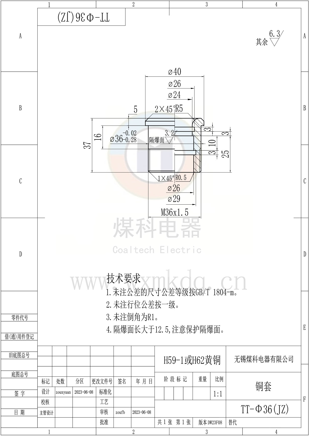 ◆ 安装尺寸:Φ36。