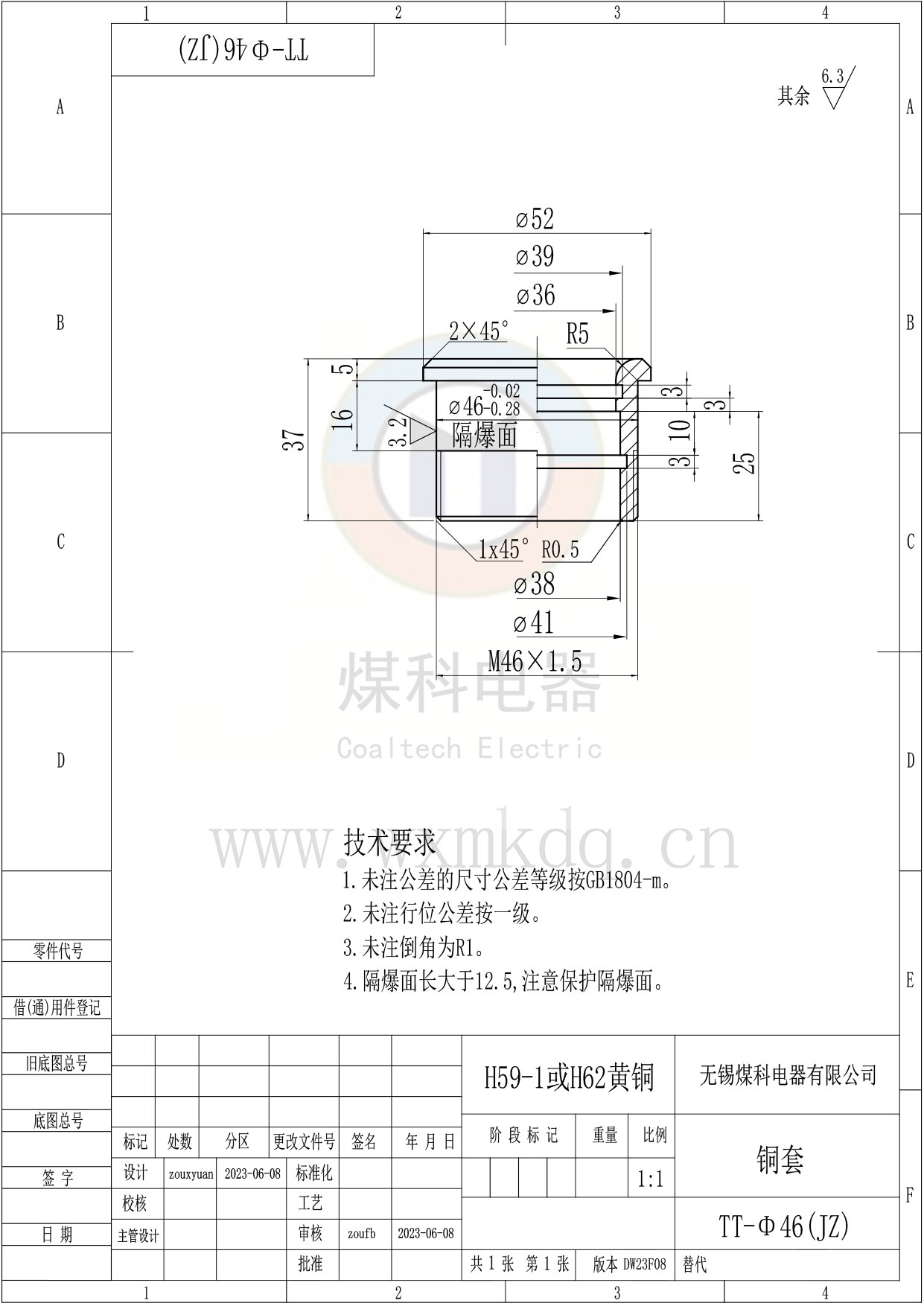 (1)隔爆面安装铜套;(2)芯数;(3)光纤及接头规格;(4)上端(法兰侧)预留多长;(5)下端(锁紧螺母侧)预留多长。